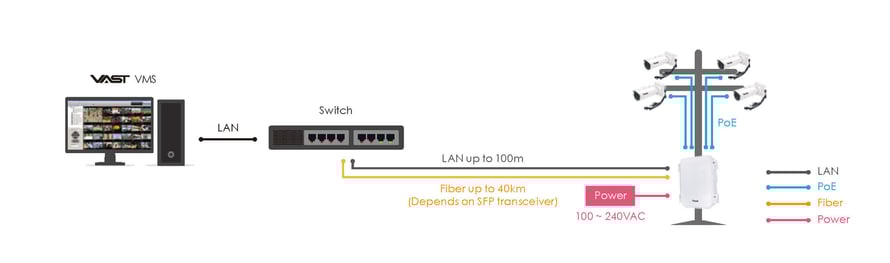 Set C-2 Cabinet 240W 2x95W PoH/PoE Speed Dome + 2x802.3at/af Cameras