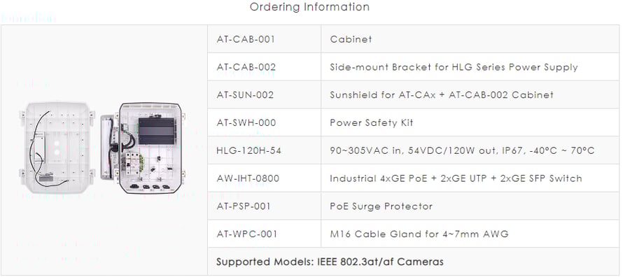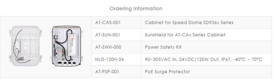 VIVOTEKのAT-CAB-001およびAT-CAS-001は、スピードドーム、箇条書き、固定ドーム型ネットワークカメラなど、VIVOTEKの全範囲のネットワークカメラを簡単に設置できるように設計された屋外用の完全な監視キャビネットソリューションです。 VIVOTEKの屋外カメラエンクロージャにも適しています。