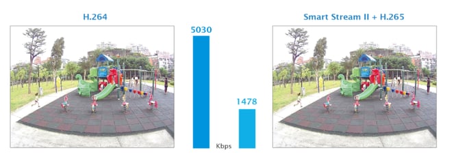 H.264とSmart Stream Ⅱ+H.265の画像比較(イメージ)