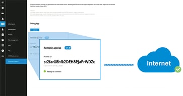 VIVOTEKテクニカルサポートはNVRを迅速にデバッグできます。管理者は、Debugのキーを押し、テクニカルサポートチームにログを提供するだけでログをエクスポートして、カスタマーサポートを受けることができます。 また、インターネットに接続しているときにアクセスIDを取得できます。 リモートアクセスボタンをオンのままにし、テクニカルサポートチームにアクセスIDをメールで提供して、NVRにリモートアクセスしてエラーの原因を分析し、デバッグすることができます。